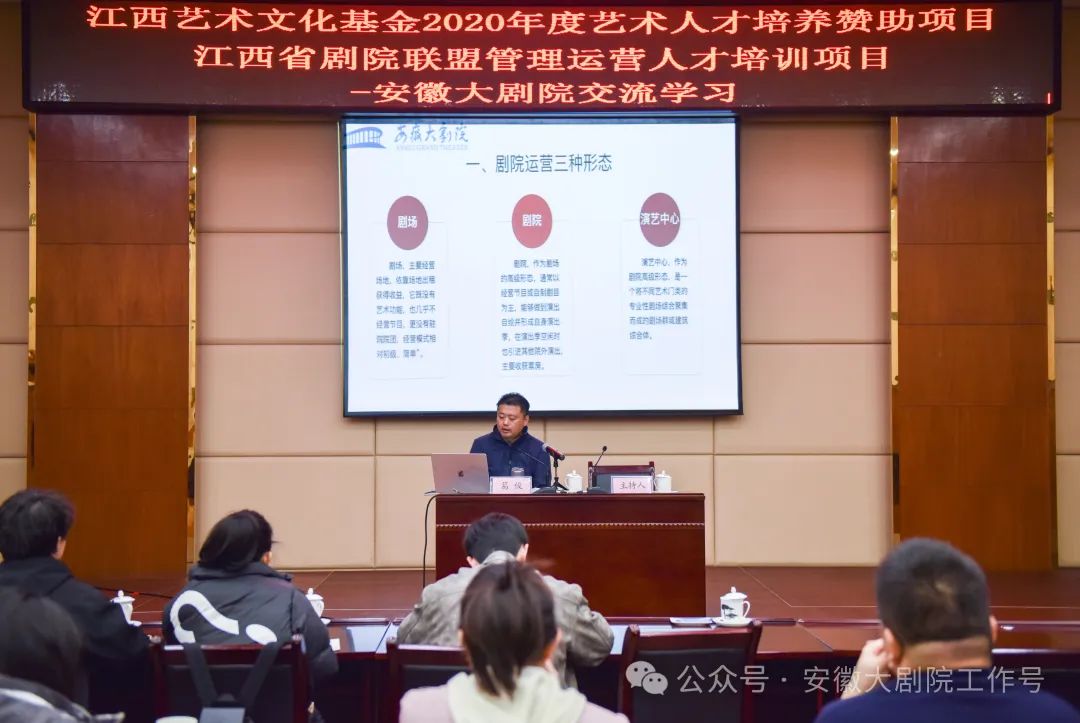 3月12日,“江西省剧院联盟管理运营人才培养项目”安徽大剧院交流学习活动在大剧院贵宾楼成功举办。安徽大剧院党总支书记、总经理葛俊现场授课培训,来自江西省内演艺界从事剧场营销、剧院管理、剧目创排、场馆衍生活动、大型活动策划执行等相关工作的30名学员参加学习。