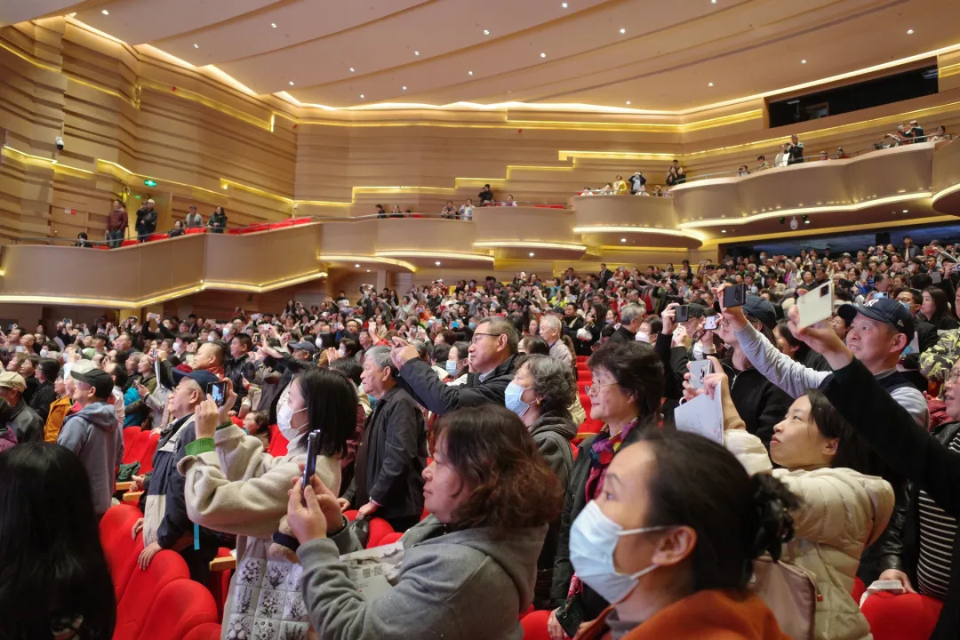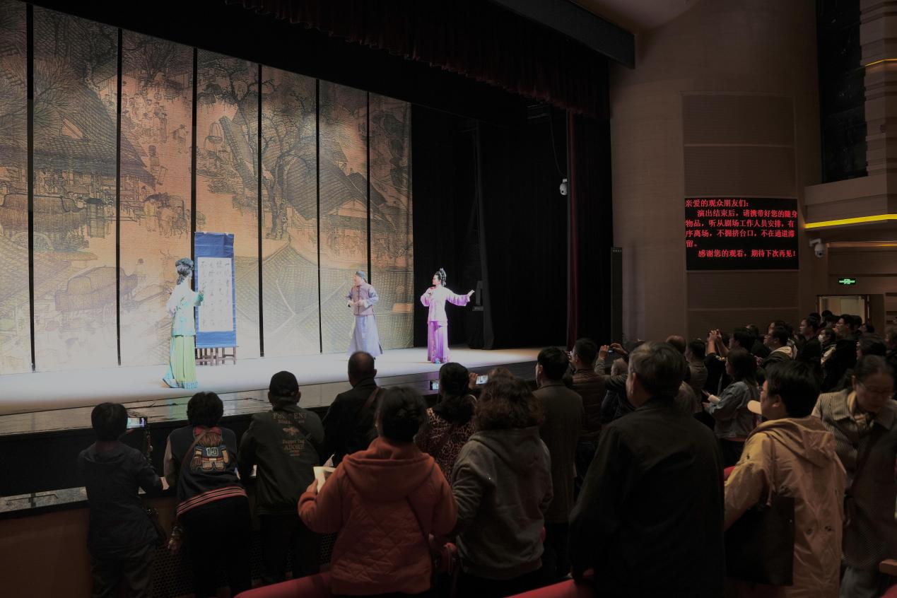 谢幕环节,两位主演返场表演了黄梅戏经典唱段“爱歌”,可观众仍觉不过瘾,“再来一个、再来一个”的呼声此起彼伏,此时我院拿出了提前精心准备的返场彩蛋——黄梅戏新编小戏《六尺巷》,收获了在场观众又一波热烈的掌声,为当晚的演出画上圆满句号。