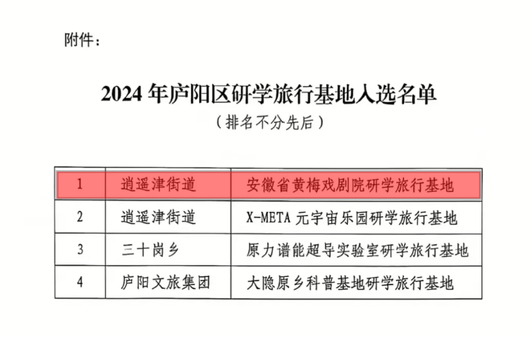 近日,安徽省黄梅戏剧院正式获批成为合肥市庐阳区研学旅游基地。