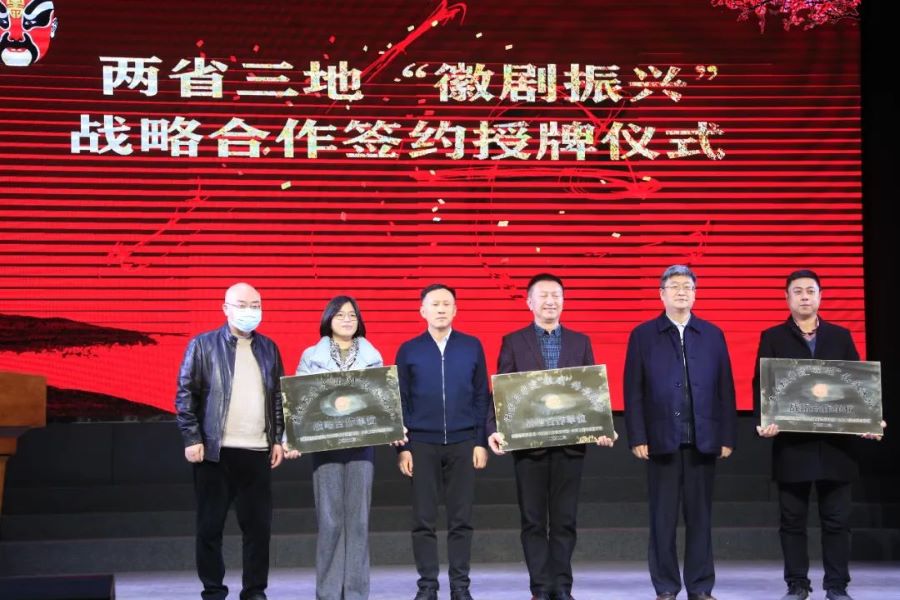 黄山市委书记凌云,黄山市委副书记、市长孙勇,安徽演艺集团党委书记、董事长张健,黄山市委副书记、宣传部部长罗建华,安徽演艺集团副总经理陈飚,以及江西省上饶市相关负责人到场见证两省三地“徽剧振兴”战略合作授牌签约,并与观众一道欣赏精彩的徽剧演出。