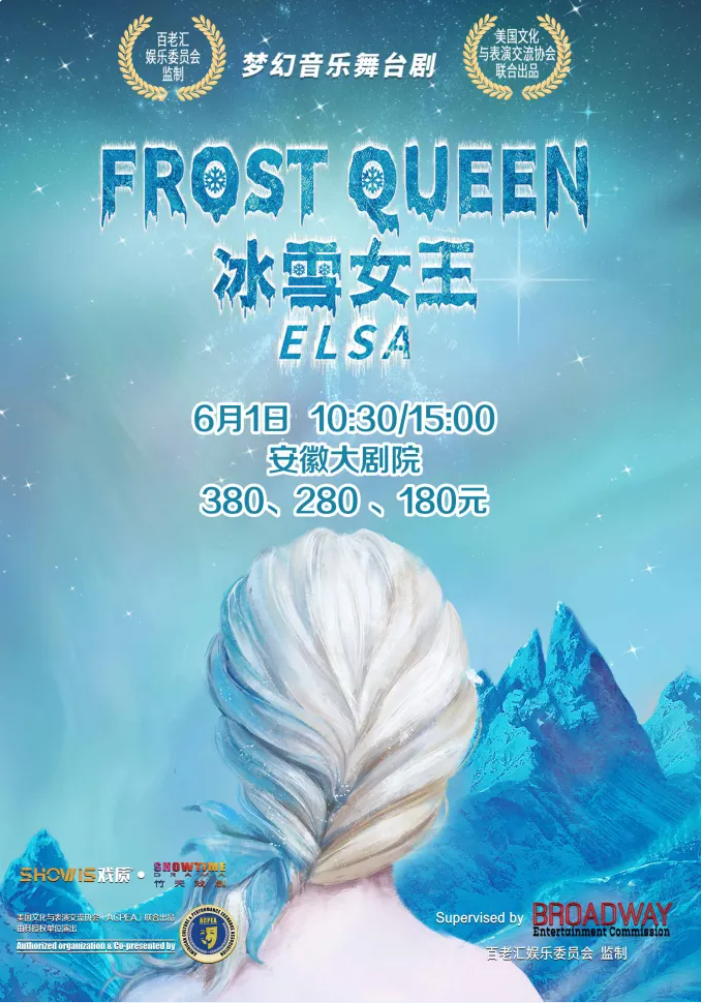 女士们先生们,由竹天戏剧携手美国百老汇娱乐委员会、美国文化与表演交流协会,终于将家喻户晓的《FROST QUEEN:ELSA 冰雪女王:艾莎》带来了中国。这部充满百老汇味道的梦幻音乐舞台剧将带你进行一场梦幻般的奇幻体验。你会发现,来到这里,你将实现梦想。