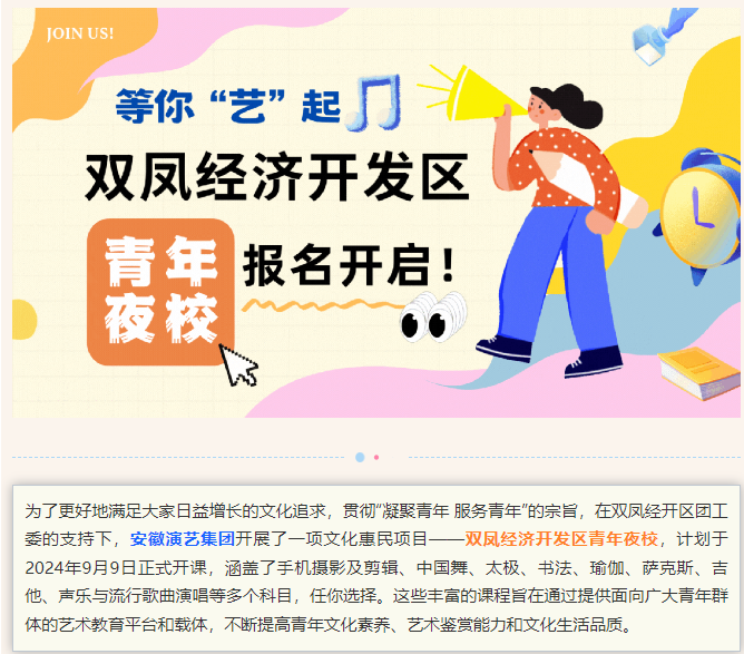 安徽演艺集团双凤经济开发区青年夜校,报名开启!
